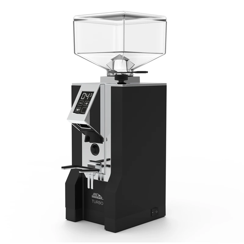 “Turbo“ verspricht schon im Namen selbst, dass die Mühle herrlich schnell mahlen kann. 1,8 bis 2,3 Gramm Espresso kann die Mühle je Sekunde mahlen. Dabei ist sie besonders leise. Die Mühle hat ein TFT-Display und eine integrierte Timer-Funktion. Eureka legt alles darauf aus, dem Kaffeefan eine möglichst bequeme Zubereitung seines Lieblingskaffees zu bereiten. So ist die Turbo 16 CR quasi handsfree, da die Siebträgeraufnahme höhenverstellbar, gummiert und zum Einhängen des Siebträger ist. Der Mahlgrad ist stufenlos einstellbar, die Dosierung kann entweder als 2-fach Portionsautomatik oder auch manual gewählt werden.