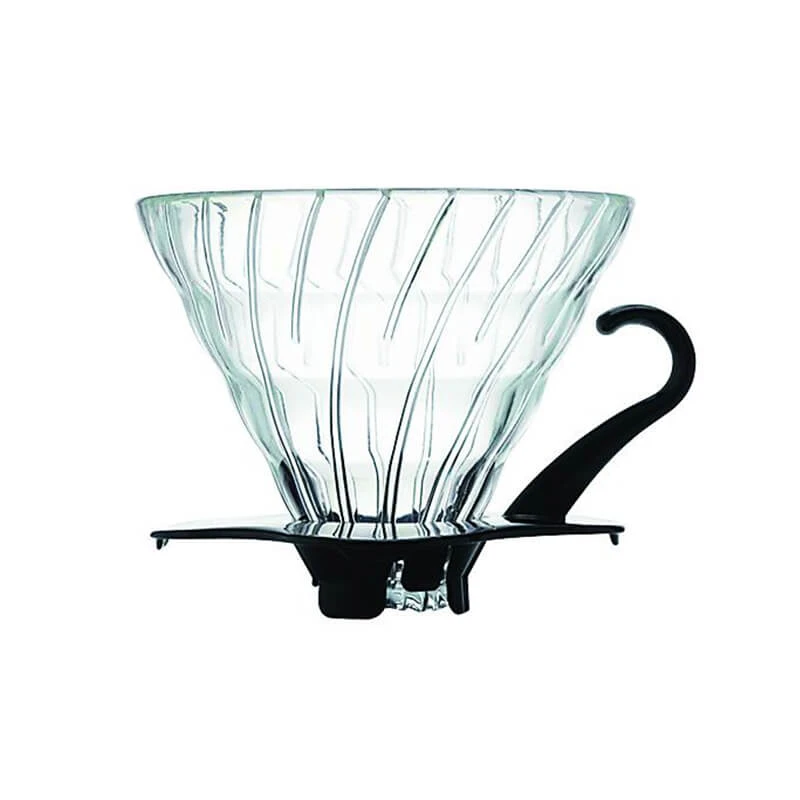Der Hario Coffee Dripper aus hitzebeständigem Glas ist perfekt für die Zubereitung Ihres Filterkaffees. Der schwarze Henkel mit Aufsatz ermöglicht es Ihnen, mit dem Filter mit heißen Wasser mühelos zu hantieren. Der Aufsatz passt auf nahezu auf jede Kanne. Das Glas lässt sich problemlos reinigen und von Kaffeesatz befreien. Die Vorteile des Filters liegen auf der Hand: Die Kegelform von 60 Grad erzeugt eine stärkere Kaffeeschicht. Auch Dank der einzelnen großen Öffnung kann der Kaffeegeschmack, durch Veränderung der Durchflussgeschwindigkeit des Brühwassers, beeinflusst werden. Die Spiralrippen halten das Filterpapier von der Wandung fern und sorgen für eine maximale Geschmacksentfaltung des Kaffees. Der Dripper 02 eignet sich optimal für bis zu 4 Tassen. Das Hario Filterpapier 02 finden Sie ebenfalls in unserem Shop.