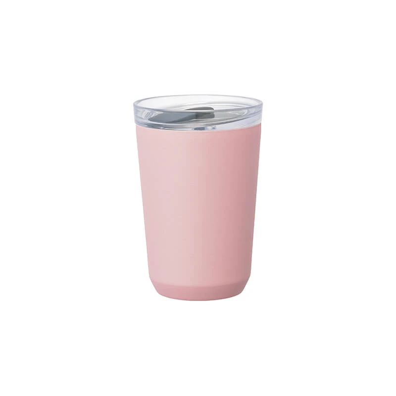 Der To-Go Becher von Kinto besteht aus einer doppelwandigen Edelstahlkonstruktion, welche dank eines Vakuums isolierend wirkt. So bleiben Heißgetränke länger warm und Kaltgetränke länger kühl. Der Becher wird zum unteren Ende hin schmaler, was sich im Alltag als besonders praktisch erweist. So passt der Becher bequem in die meisten Getränkehalterungen, wie etwa im Auto. Auch das Stapeln mehrerer Kinto Becher zum platzsparenden Verstauen gelingt problemlos. Die Pulverbeschichtung in Pink wirkt sehr hochwertig und sorgt für eine angenehm raue Textur in der Hand. Mit einer Füllmenge von 360 ml eignet sich der Becher perfekt für größere Portionen Filterkaffee oder große Mischgetränke, wie etwa einen Latte Macchiato. Ohne Deckel ist der Becher 117 mm hoch.