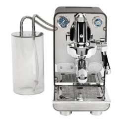 Der 2 L Wassertank ist extern und wird mit hochwertigen Edelstahlschläuchen mit der eigentlichen Maschine verbunden. Der isolierte Brühkessel besteht aus Edelstahl und weist ein Volumen von 750 ml auf. Das Gehäuse der Puristika in Edelstahl und Anthrazit ist äußerst hochwertig verarbeitet und platzsparend – dank der schmalen Bauweise. Auf die Möglichkeit des Bezugs von Wasserdampf für Milchschaum wurde bei der ECM Puristika bewusst verzichtet. Die Aufheizzeit des Einkreisers beträgt etwa 12 Minuten.